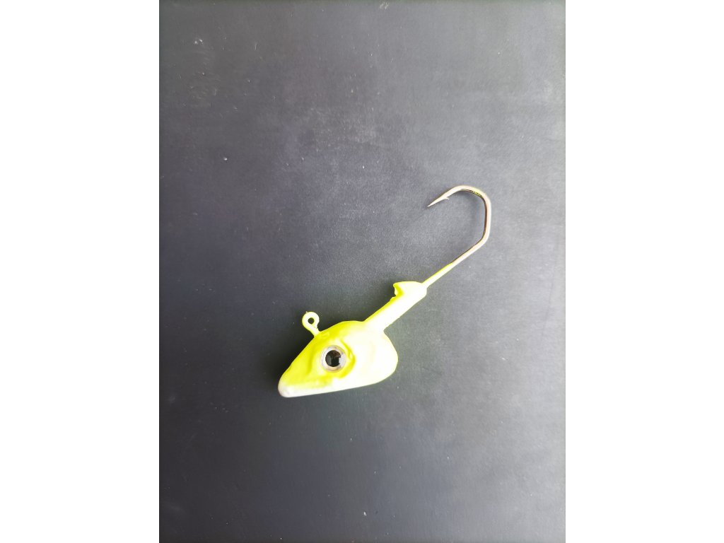 Jiggová (přívlačová) hlava délky 12 cm o váze 120 g k napíchnutí silikonové nástrahy, hák 7/0.