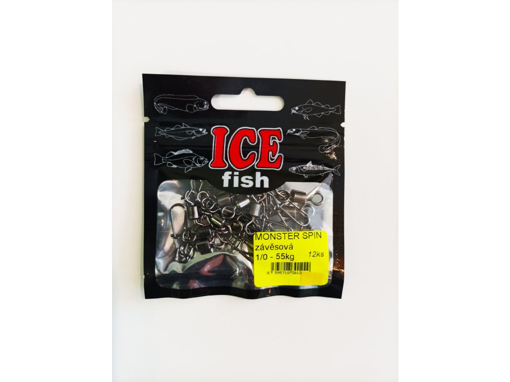 Karabina monster velikosti 1 s pojistným závěsem s nosností 55 kg. Balení obsahuje 12 kusů, hák 1/0.